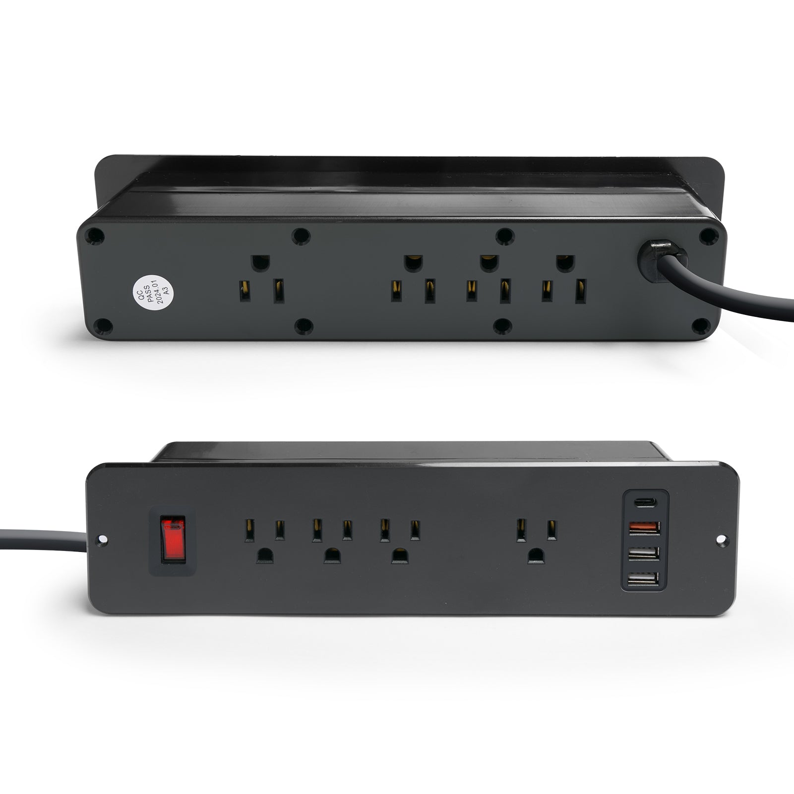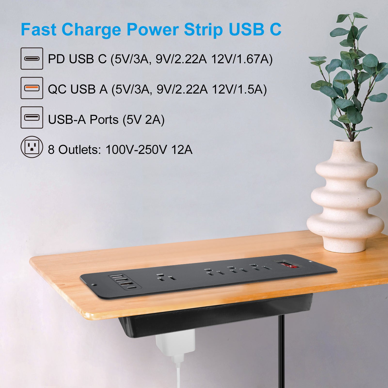 🔋【Recessed Mount Desktop Power Socket】--The power strip adopts recessed mount design, built in furniture/desk/cabinet/drawer, just like it’s one part of furniture. The 4 Outlets in up sides can charge your PC,Speaker,Power bank Phone, the 4 outlets in bottom can charge your fan,monitor,Humidifier, saving your space and no more any cable mess around.